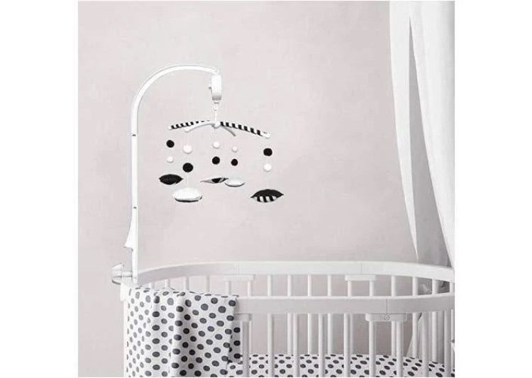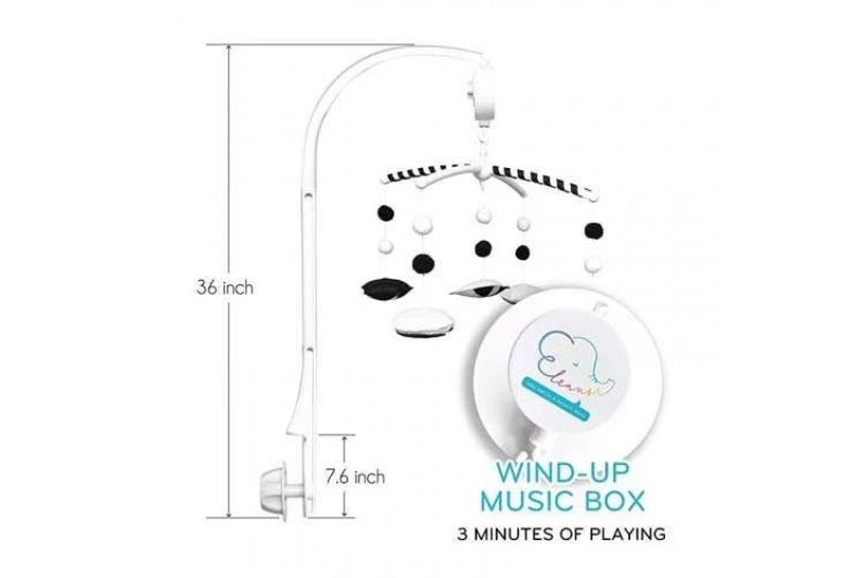 ? Made For Baby’s View – With This Montessori Mobile, The Baby Will Never Look At Any Animal Bottom Of The Elephant Mobile Or Woodland Mobile Anymore. Our Nursery Mobile Is Made For Baby’s View And To Be Pretty In The Nursery. Visual Stimulation For Baby 0-5 Months – Introduces Baby To High Contrast Images And Colors For Early Visual Development With A Hanging Mobile Over Little One’s Crib. The Baby Crib Toys That Attach To The Crib Are High Contrast Baby Toys With 5 Different Shapes Which Give Visual Stimulation To Engage Your Baby. Evironmental – The Musical Mobile For Crib Designed With Winding Drive, No Batteries Needed, More Environmental Protection. The Soft Melody Can Help Baby Easier Fall Asleep. It Can Last About 3 Minutes. The Music Box Can Take Along To Use. Size And Material – Clip Crib Rail Thickness Up To 1.54 Inch (before Purchasing, Please Make Sure The Edge Of Your Crib Suitable For The Baby Bed Holder) The Crib Mobile Arm Are Made Of Safe Abs Material, Offer Your Baby Harmless Using Experience. Easy To Install, No Screw Needed.