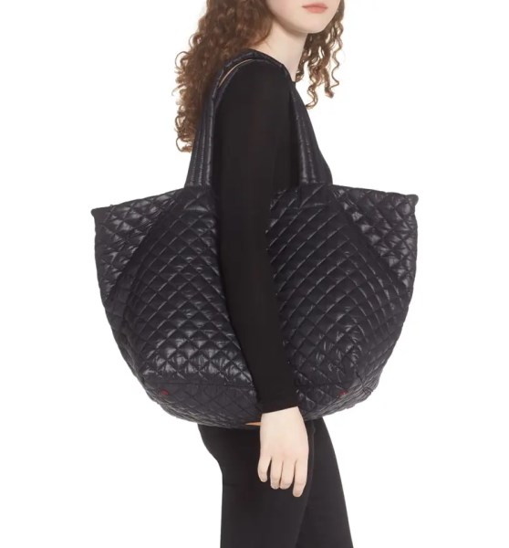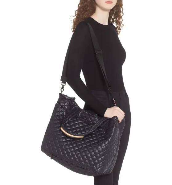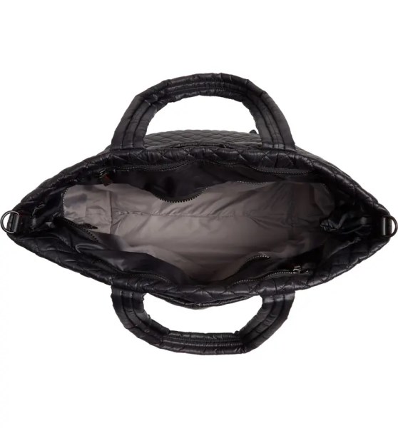 - Quilted pattern offers an attractive look to this tote bag
