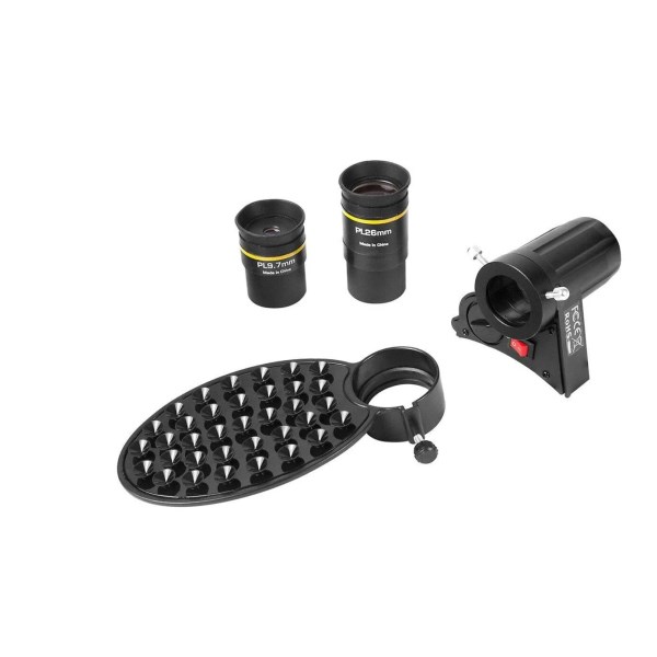 - Comes with two interchangeable Pl?ssl eyepieces and a 2x Barlow lens that provide magnifications ranging from 19x to 103x.