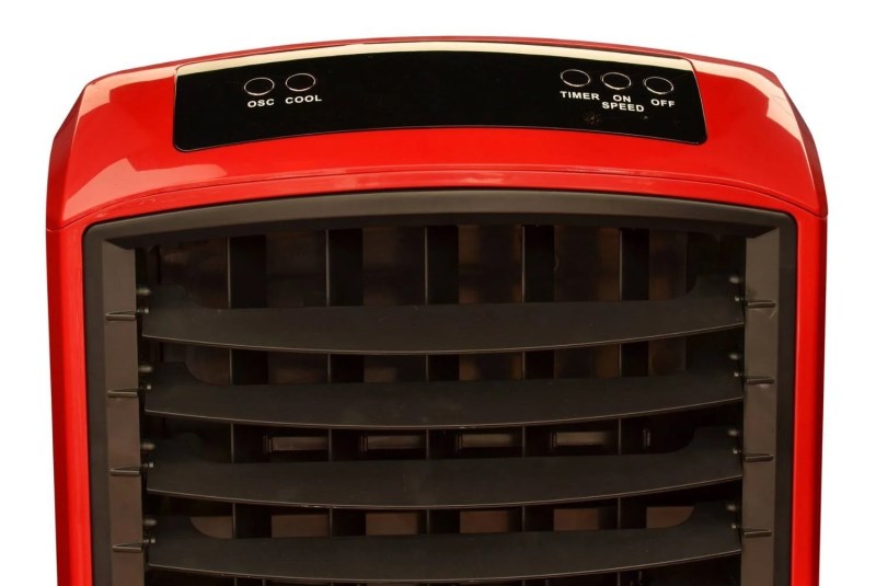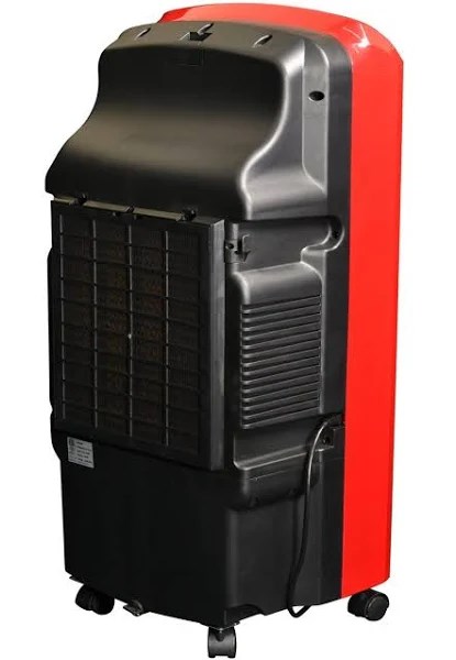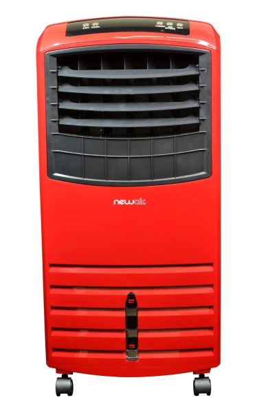 Keep cool with the NewAir portable evaporative cooler. This unit can cool up to 300 sq. ft. with ease and at 160W, it uses much less electricity than an air conditioner. The unit cools in style with a sleek red color that adds a pop to any room. Easy-to-roll casters mean that you can have spot cooling on the go, and a remote control makes it even easier to transport and use in different rooms. This unit hold up to 5. 3 gallons of water but can operate also with no water at all.