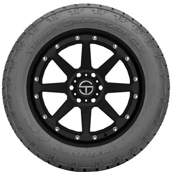 If youre on the freeway one day and off the beaten path the next, the Nitto Terra Grappler is an ideal choice for your truck or SUV. This tire features a new tread compound that delivers the powerful all-terrain traction the Terra Grappler is known for, while also offering enhanced durability and treadlife. Dont worry about sacrificing ride quality once you get back on the road — the tread blocks are computer-tuned to give you a comfortable, quiet drive. And with two distinct sidewall patterns lightning bolts or blades?? you can choose the design that fits your truck perfectly.