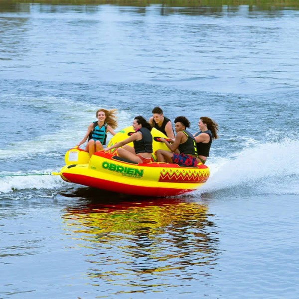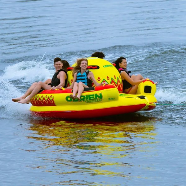 Bring the fiesta to the water with the O’;Brien Sombrero 5 Towable. Whether you choose to face inward or outward, kneel or sit, this tube is guaranteed to provide fun for all riders. This unique tube seats up to five riders, and because of the various seating positions, all you have to do is switch seats with a friend for an entirely new experience. Unlike other sombreros, this one will keep all smiling faces in plain sight. Size: 110″ diameter Riders: up to 5 Max. Capacity: 900 lbs. Bladder: 30 / 24-gauge Cover: 840D / 420D nylon Handles: 22 handles w/EVA knuckle guards Quick-connect tow hook 3 Lightning Valves