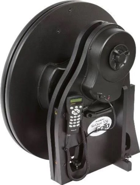 Not only does the Orion SkyQuest XX14g GoTo Truss Tube Dobsonian feature exceptionally large 14-inch diameter optics, but its Orion-designed collapsible GoTo Dobsonian base and truss tube make the XX14g conveniently portable, since you can break the entire telescope down into bite-size component pieces. The optical tube and base both separate into smaller components — without tools. Once broken down, everything fits easily into even a compact car, for the trip to your favorite dark-sky site. Stability of the assembled XX14g Dobsonian base is enhanced by its 1-inch thick composite wood base panels, which are laminated with water-resistant black melamine. GoTo and tracking motors are pre-installed on the base panels, making assembly nice and easy. Since all base and truss tube hardware is captive, you don’t have to worry about leaving a screw behind after a long night of viewing in the field.WARNING! When using a truss tube Dobsonian for solar observing, always use a Light Shroud and a properly sized solar filter. Make sure there are no gaps between the Shroud and the telescope where direct sunlight can reach the mirror, otherwise eye injury or damage to the telescope can occur. Before using any telescope for solar observing, install protective covers on all optical components. Glancing through an uncovered optical system can cause permanent eye damage. Always install protective caps on all optical instruments if left out during daylight hours.
