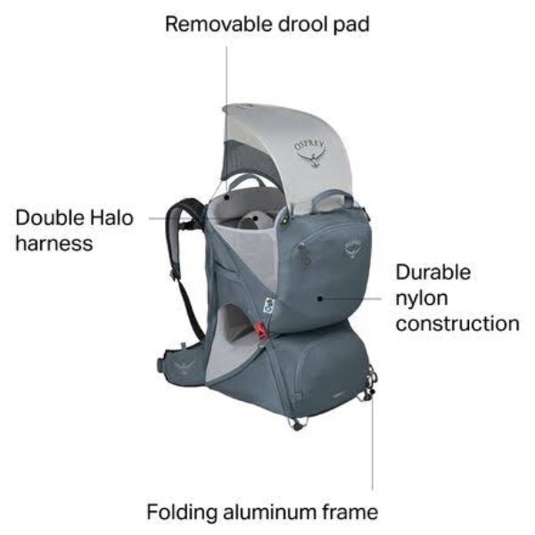 Osprey – Poco LT Child Carrier tungsten grey – Share everyday adventures with the Poco LT. Small and safe, this lightweight child carrier is ideal for tight stores, busy sidewalks and shorter hikes. Our patent-pending frame folds flat to store small and out of the way. Featuring ventilated AirScape suspension, adjustability to fit a variety of body shapes and a built-in UPF 50 sunshade. TUV-certified and made sustainably with bluesign-approved materials and PFC-free DWR. The built-in sunshade easily stores and deploys from dedicated zippered pocket for convenient UPF 50 sun protection. The patent-pending lightweight stainless steel frame folds smaller than other standard child carriers making it easy to travel with and store. The frame locks in place to fully support the child and provide a stable platform to set the child carrier down. A continuous panel of lightweight framesheet with mesh-covered, die-cut ridged foam provides outstanding fit, excellent ventilation and unrestricted movement when wearing the pack. With 6”/15 cm of torso length adjustment, the Poco LT Child Carrier is quickly and easily fitted to a variety of adult users even while on the go.
