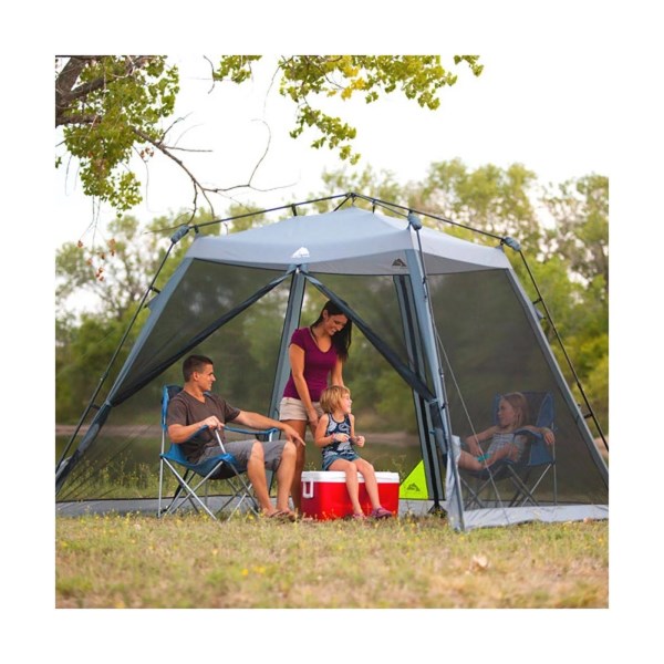 Enjoy spending more time outdoors using the Ozark Trail 10′ x 10′ Instant Screen Canopy. It’s ideal for camping, hunting, fishing, backyards, tailgating and more. This Ozark Trail instant canopy has a roomy interior that offers a retreat from the sun, rain, wind, snow and insects. It assembles in just 60 seconds making it a suitable option for a sudden change in the weather. It has a strong steel frame with heavy-duty mesh giving you proper ventilation and has a height of 7′ in the center. This outdoor tent includes two doors allowing for an easy entrance and exit. The Ozark Trail 10′ x 10′ instant screen canopy comes with a carry bag for effortless movement from one location to another.