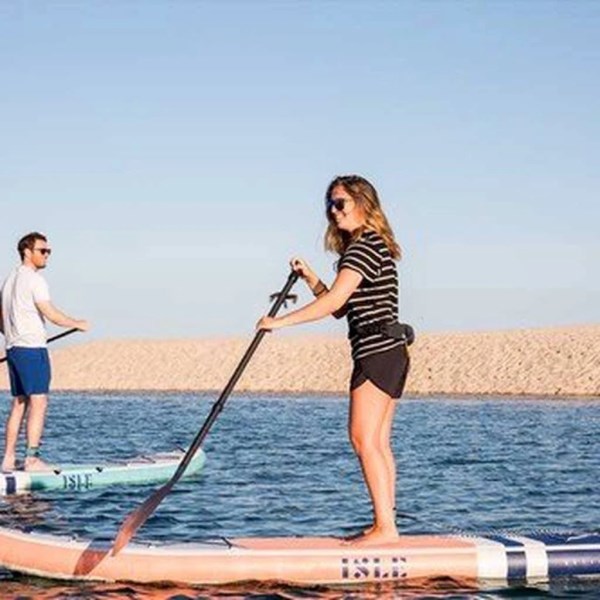 Simply put, the Pioneer can do it all. This inflatable paddle board is an all-star when it comes to functionality. At 34″ wide, this board gives riders extra stability and balance for every activity. Take the Pioneer for a leisure paddle one day, then other days, use it for yoga, fishing, surfing or bringing your dogs, kids or significant other along for the ride. The Pioneer is an entry-level paddle board, but that doesn’t mean paddlers of all skill levels can’t enjoy it. The Pioneer is constructed with military-grade PVC making this board rigid enough for all paddle board activities and durable enough to last you for the years to come. This all-around inflatable paddle board is six-inches thick helping you stay balanced while you’re paddle boarding. The Pioneer has a six-point bungee system on the nose and a four-point system on the tail leaving you with more than enough storage space to carry your gear.