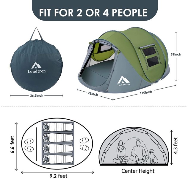 - Spacious Enough for 3-4 Person Pop Up Camping Tent.
