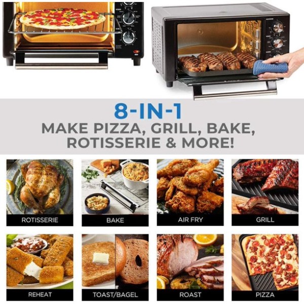- PowerXL Air Fryer Grill 8 in 1 Roast Bake Rotisserie Electric Indoor Grill (Deluxe 8 Piece Accessory Pack) Black.