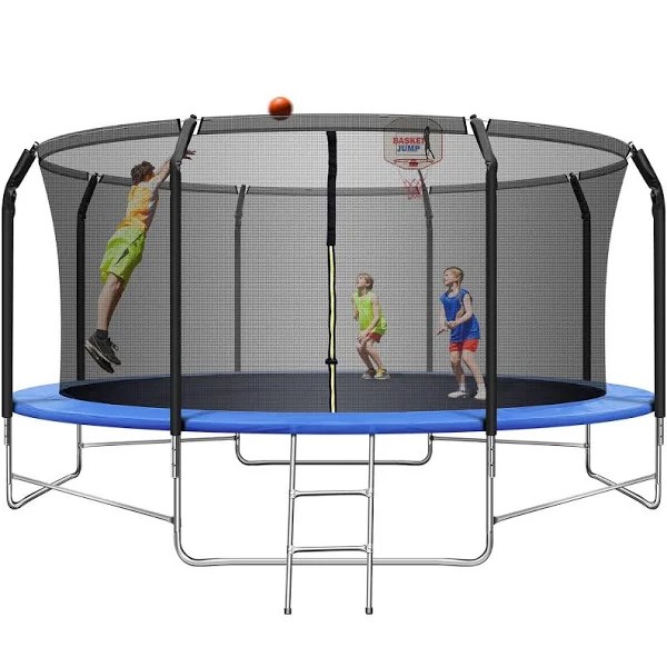 The 15′ Round Trampoline with Safety Enclosure is one of the safest, bounciest trampolines on the market. With an ultra-smooth bounce controlled by 108 galvanized steel springs, the impact-absorbent enclosure system,plus a thick sure-lock frame pad, reaches the paramount of safety. Engineered steel joint brackets speed assembly and increase stability, this is sure to provide hours of satisfaction and delight throughout the seasons. Whether it’s a warm summer morning or a day after school, you and your children will be sure to have fun