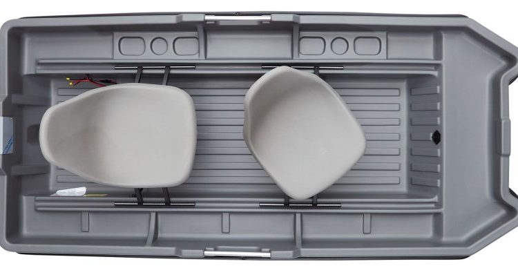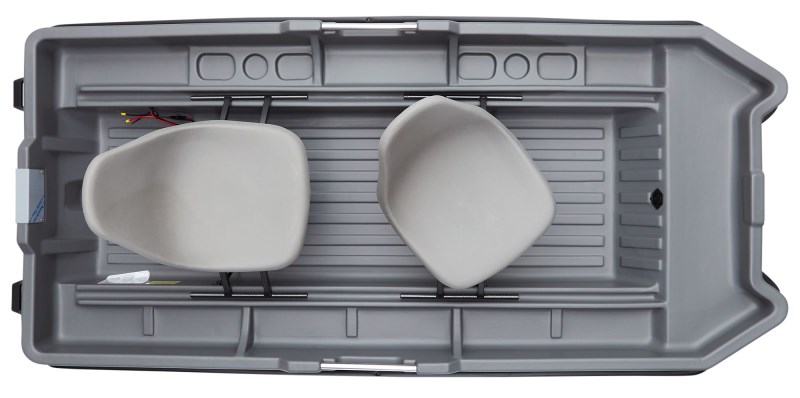 Specs: Length: 8’7” Width: 4’ Deck Height: 1’8” Boat Weight: 100 lbs Max Capacity: 515 lbs Passenger Capacity: 2 Design: Built for fishing and recreation in calm, slow-moving lakes and rivers Features: Adjustable seats with removability for versatile setup Fits into truck bed for easier transport 4 handles to make carrying easier for two people Pre-wired for electric trolling motors Flat bottom to more easily maneuver in shallow water Wide hull for increased stability when casting Mount for motor built-in along with molded battery location Beverage and tackle holders recessed to help keep them in place Open design to increase leg space