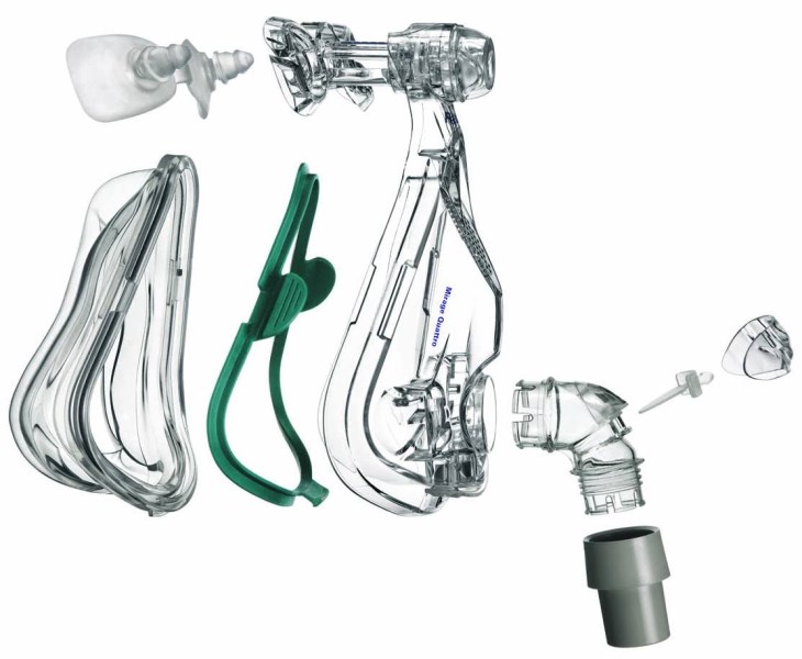 Fourth generation design perfection! The Mirage Quattro is the fourth generation full face mask that provides superior seal and personalized comfort to fit more than 95% of users. With its streamlined design, the Mirage Quattro offers a range of user-friendly features and professional benefits. Personalized comfort Adapts to your profile -MicroFit dial allows precise adjustments of the forehead support while the mask is on your face. Turning the dial sets the mask at the most comfortable position for you. Seals to your facial contours -soft and pliable, the dual-wall cushion with spring air technology follows the contours of your face and gently adjusts the seal accordingly.