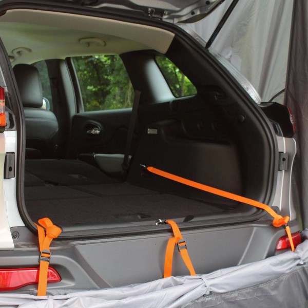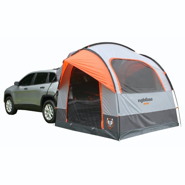 The Rightline Gear SUV Tent lets you sleep off the ground in the comfort of your own vehicle. The tent connects to the back of any size SUV, minivan, wagon, or pick-up truck with cap. Large size no-see-um Mesh windows and doors have storm covers that can be closed for privacy. The SUV Tent features (2) gear pockets, a lantern hanging hook, and glow-in-the-dark zipper pulls. The vehicle sleeve easily disconnects, allowing you to leave the tent behind as you go about the day’s adventures.