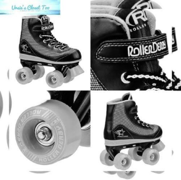 Watch him roll out on the Roller Derby boy’s Firestar quad roller skates. This fresh skate delivers lasting comfort for your little one with a padded collar and a comfortable sports design. The power strap holds his foot securely so he feels confident to skate without holding onto you. Once he gets moving, the 54mm wheels and accelerator 608zb bearings will keep things smooth. Fits true to U.S. Children’s shoe size. Roller Derby is America’s skate company since 1936.