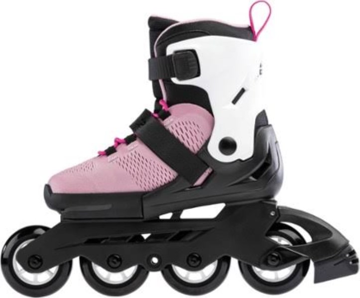 The Rollerblade Kids Microblade Skate is a high-quality adjustable skate for kids. Using Rollerblade expertise, the skates are adjustable four full sizes. An easy-to-use extension system works with the push of a button and markers in the toe area align the skates to the correct size. Junior Fit support includes an engineered mesh for breathability and provides enhanced comfort. A durable frame design lowers the center of gravity to improve stability, balance and control. 72mm Performance wheels/SG3 bearings are ideal for kids and upgrading to a faster Microblade 3WD can be achieved later by purchasing larger wheels. The buckle, power strap and lace closure system ensure a secure fit and a brake is standard. Microblade is a right choice for kids.