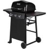 - Easy to Move: Two wagon-style wheels make this grill easy to move around, and the side spring handle allows for extra convenience for transport.