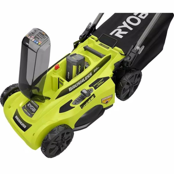 RYOBI continues to lead the industry in cordless mower innovation with their third generation 40-Volt 20 in. Combining 40-Volt Lithium-Ion Battery power with Brushless Technology this mower delivers gas-like power, without the hassle of gas, oil or maintenance. The 2 included high capacity 6 Ah batteries provide extended run-time and instant power at the push of a button. Choose between bagging or mulching your grass, to get your desired results or purchase the side discharge accessory online for 3-in-1 mulching, bagging and side discharge capability (model, AC040VSD01). Select your ideal grass height with the 7-position single point height adjustment. If you prefer mowing in the cooler evening hours, high-intensity LED headlights provide the perfect solution. When the job is done simply remove the Easy-Lift single motion lock and release bagger to empty your grass and lock it back in place. With collapsible telescoping handles, this mower easily folds down when the job is done and can be stored vertically making it ideal for compact spaces.