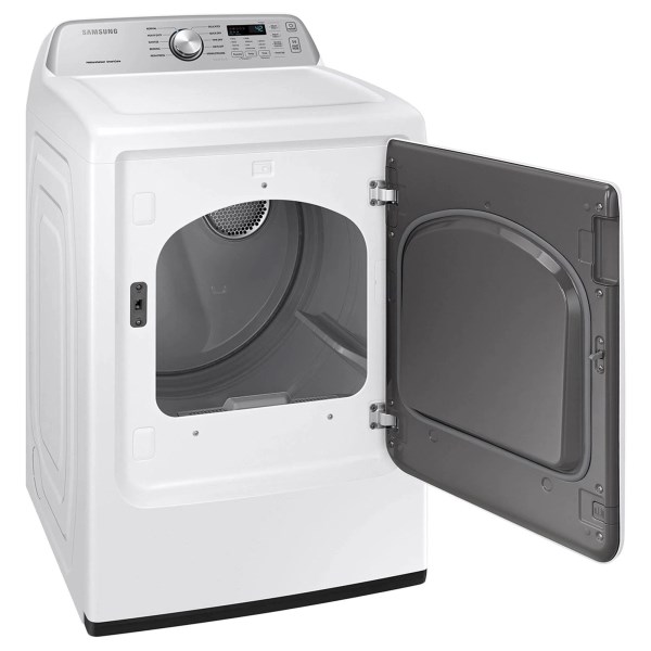 The Samsung DVE45T3400W 7.4 CuFt 27″ Electric Dryer With Sensor Dry In White automatically optimizes the time and temperature of your drying cycle to protect your clothes from heat damage, while avoiding excess energy use. The dryer fits more for fewer loads, Fewer loads, less time in the laundry room means more time doing the things you love. Equipped with smart care, which gives easy troubleshooting from the convenience of your smartphone. Smart Care interacts with your washer and dryer to perform an immediate diagnosis and offer quick solutions. Stop worrying about lint or fluff building-up and blocking your dryer’s air intake. The Filter Check Indicator light on the control panel will provide you with a helpful reminder when it is time to clean the filter, so your dryer maintains an optimal performance.