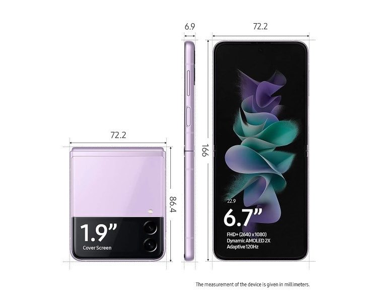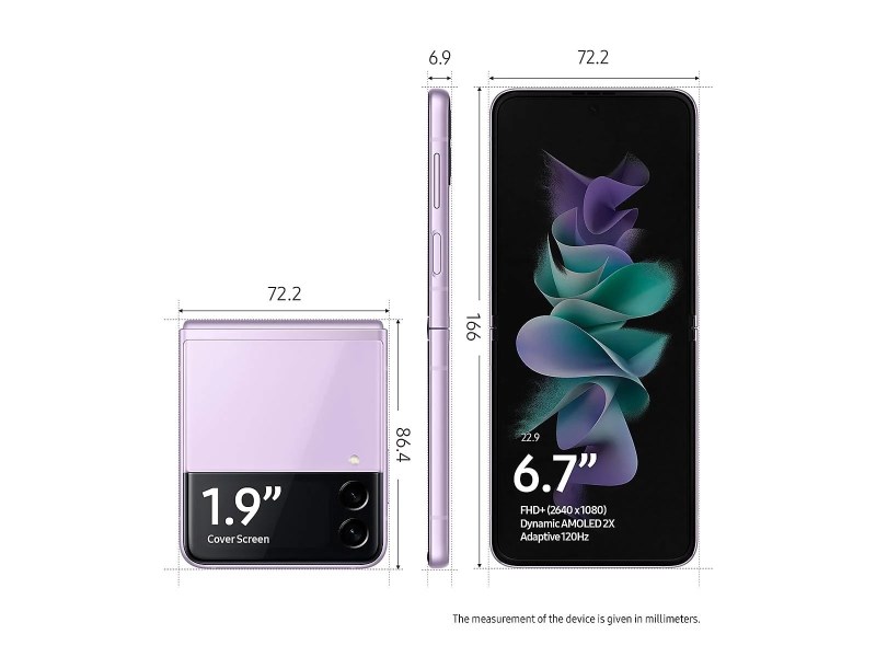 Introducing the Samsung Galaxy Z Flip3 5G, a foldable smartphone that helps you communicate, capture and socialize at 5G speed. ? Make a statement with a beautiful, pocket-sized phone that unfolds into a dazzling ?.?quot immersive display. See your notifications on the cover screen and even use Samsung Pay without having to open your device. Snap your pics and videos with total freedom thanks to Flex Mode, and even experience hands-free video calls so you can chat without taking a break from your tasks. The intuitive camera captures studio-quality photos with Portrait Mode and with Hyperlapse and Auto Framing you can confidently get the shot on the first try. Plus, Multi-Active Window makes it possible to use up to ? apps at the same time, so you can get more done at once. ? Now with the coverage of ?G Nationwide and the unprecedented performance of ?G Ultra Wideband. Size: ??? GB. Color: Lavender.