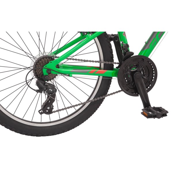 It’s a bright, beautiful day outside (or it will be soon) and you shouldn’t be cooped up any longer. It’s time for you to get out and seize the day aboard the Schwinn Ranger, a front suspension mountain bike that is itching to hit the trails with you. Take control of your ride with the durable aluminum mountain frame and smooth out bumps with the Schwinn front suspension fork. Then really rip it up with the 21-speed twist shifters for quick gear changes, aided by the Schwinn alloy crank with triple chain rings. Schwinn’s added light and strong alloy rims for extra durability and front and rear alloy linear pull brakes for secure stopping. Take it for a ride on any surface you desire, from gnarly weekend trails to smooth weekday work commutes. It looks good, feels right and rides smooth, so what are you waiting for? Enjoy the freedom of riding a Schwinn