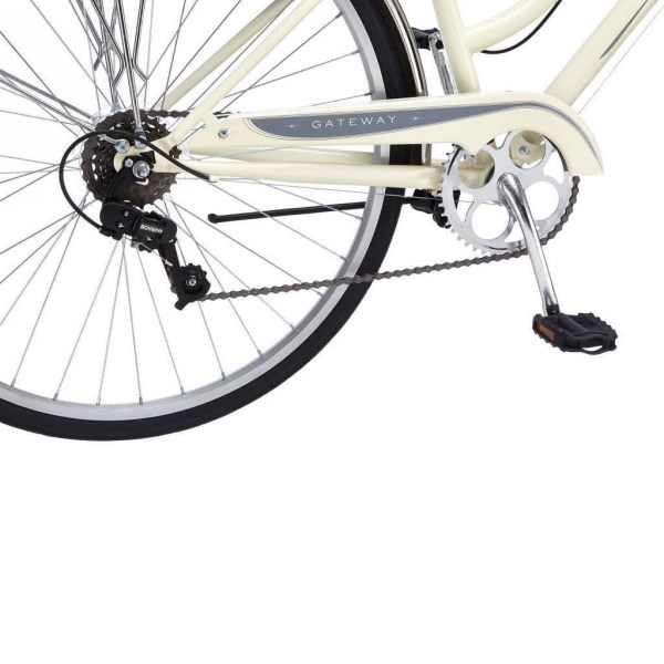 The Gateway is a bike of many talents. During the week it is a practical choice with 7-speeds, a rear carrier, alloy rims and brakes. Yet on weekends it has style and comfort with a spring seat, swept back handle bars, stylish paint and handsome fenders. Take a ride out for breakfast with friends or use it on a hilly campus. Classic style will take you where you want to go