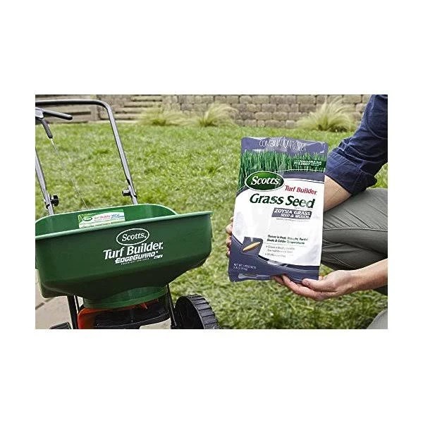- Set to 18 and go over lawn twice for reseeding. For new lawn/bare spot repair, set to 18 and go over lawn three times Scotts Hand-Held Spreaders