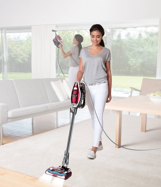 This Never Loses Suction, Never Loses Power vacuum cleans as well as an upright without all the weight of one! It cleans bare floors and deep cleans carpets. With 2X capacity of the original Rocket, high output LED lights on the nozzle and hand vac, and advanced swivel steering, this vacuum makes cleaning even easier than before, while keeping the weight at less than 8 lbs. Includes a crevice tool, dusting brush, pet hair tool, Hard Floor Genie with microfiber pad, & New TruePet Motorized Brush and on board storage clip. The new TruePet Mini Motorized Brush puts all the power of an upright in the palm of your hand. The TruePet picks up pet hair, loose debris, and powerfully deep cleans surfaces. Use the quick release foot pedal to easily transition from floor to ceiling, and use the wand to reach high above or between narrow spaces. Use the handheld like a hand vac to clean stairs and furniture. The slim design is also great for cleaning under furniture. The dust cup is even easier to empty than the original Rocket because it’s removable and holds more debris than before. The On board storage clip provides two tools that ride along for convenient use. This corded vacuum is portable and easy to store.