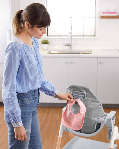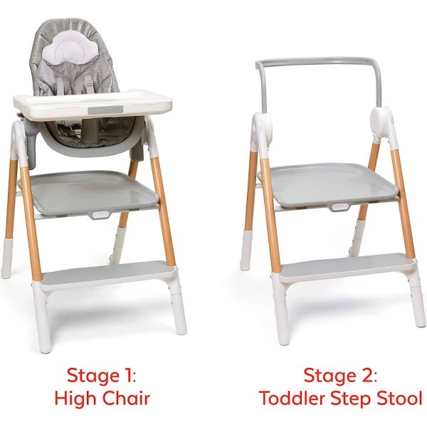 Loaded with functional features to make mealtime easier, the Sit-To-Step Highchair from Skip Hop starts as a highchair and then converts to a kitchen helper for grow-with-me versatility. As a highchair it can be used from 3 months, as the height adjustable seat reclines in three angled positions and the infant insert and head support make it super comfy for infant feeding. As your child grows, it can be pulled right up to the table so that baby is part of family meals. The secure 5-point harness and wipe clean seat cover both remove for easy cleaning and the tray has a dishwasher safe insert too. There’s even built in storage space and a hook on the back for bibs. From 3 years, it can be used as a step stool and and the space saving design folds for easy storage. What’s not to love!