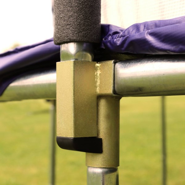 Have a ball bouncing in your backyard on this extra-wide trampoline. The Skywalker Trampolines 17 ft. oval trampoline with enclosure provides plenty of room for safe and fun jumping activities. This trampoline features a spacious oval sized jumping surface and extra legs for optimal support. The steel frame is made of 14 gauge galvanized steel that will help withstand the elements. It is designed with innovative safety features, making it one of the highest quality and safest Trampolines available. Reinforced welded T-sockets secure the enclosure frame to the trampoline frame eliminating structural twisting. The Stay-put enclosure net design uses a button-hole feature interlocking the enclosure netting directly to the jump mat away from the springs and frame creating a gap free jumping environment with no ropes to thread. All materials are made with quality UV resistant materials for added durability.