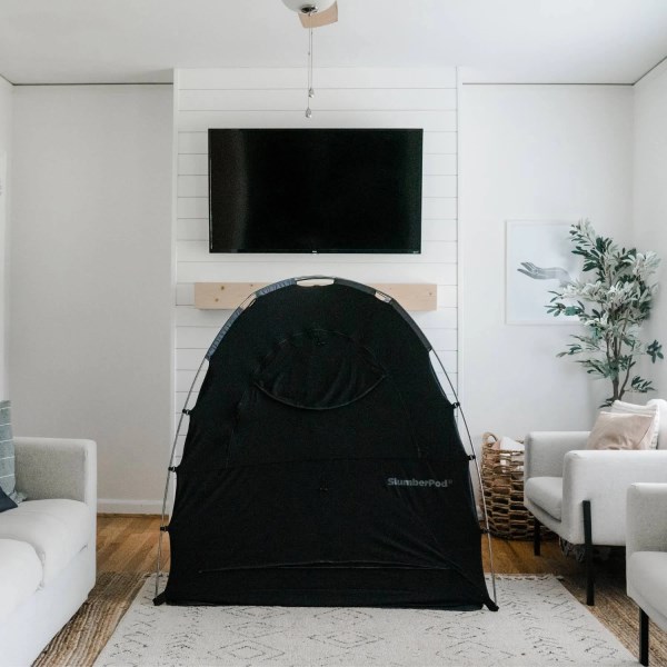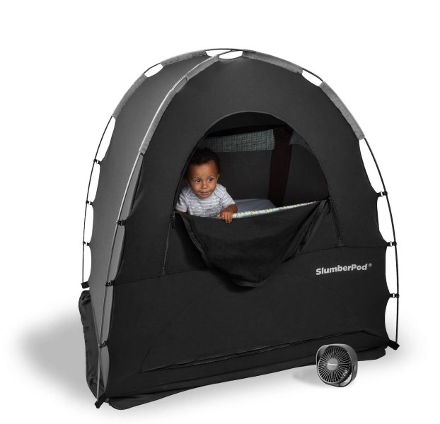 The SlumberPod with Fan is the first portable, privacy sleep nook that allows babies to sleep in their playard, mini crib or toddler cot with room to sit up or stand up inside. It smartly solves the problem of getting a good night’s sleep while sharing a room with your little one. Parents especially love it for traveling. This version comes with a multi-speed fan that fits safely inside the exterior zip pocket. Gentle and continuous airflow helps keep your little one cool and comfortable all night long. The SlumberPod is simple to set-up and has a zippered window that allows you to easily access your baby whenever needed.