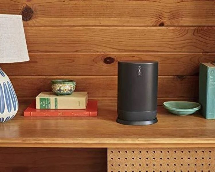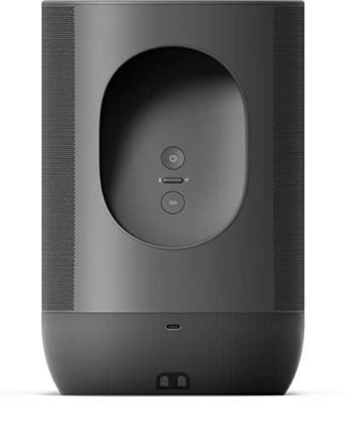 Far-Field Voice Control, Wi-Fi & Bluetooth Connectivity, Supports Multiple Music Services, Built-In 10-Hour Rechargeable Battery, Apple AirPlay 2, Amazon Alexa & Google Assistant Built-In, Supports Wireless Multiroom Streaming, Weather Resistant. With integrated wireless connectivity voice control home automation support and a built-in battery that lasts up to 10 hours between charges the black Sonos Move lets you take your music on the go. Equipped with Wi-Fi and an onboard microphone system the Move connects to your home’s wireless network and allows you to intuitively play music check the weather and traffic hear sports scores and more. Using far-field voice control technology powered by Alexa or Google Assistant the built-in microphones allows the Move to pick up your voice from any direction even while music is playing. Charge the Move and take it outdoors with built-in Bluetooth connectivity. Its IP56 rating lets you use the speaker rain or shine in hot or cold weather. Best Virtual Assistant Speakers & Displays