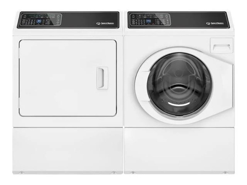 Speed Queen FF7008WN This frontload washer by Speed Queen comes with 3.5 cu. ft. or 22 lb capacity. electronic controls and stainless steel drum. Stainless Steel Tub:A stainless steel tub withstands higher wash speeds than plastic tubs. |Dynamic Balancing Technology:Possibly the greatest thing to happen to washing machines since the electric motor Dynamic Balancing Technology is revolutionizing your expectations of front load washers. This groundbreaking technology uses sensing and algorithms to virtually eliminate vibration. The result is less residual moisture in your clothes faster cycles faster dry times and operation so silent you’ll want to check to make sure it’s still running—perfect for first- or second-floor laundry rooms. |Extreme Tested Electronic Controls:Many washers and dryers have electronic controls. Capacity:3.5 cu. ft. |Type:Front Load|Width:26.875″|Height:40.4375″|Depth:27.75″|Control Type:Digital|Volts:120 Volts|Amps:15 Amps|Size:Full Size|Stackable:No|Wash Cycles:10|Maximum Spin Speed (RPM):1200|Exterior Width:27″|Drum Material:Stainless Steel|Frequency:60
