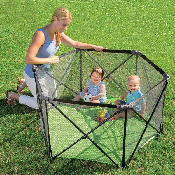 The Pop ‘n Play Portable Playard allows you to easily create a safe portable play area for your child. The ultra-lightweight and compact fold playard can be set up and taken down in seconds, making it perfect for use at home, a day at the park, or a weekend at the beach. The water resistant floor helps keep baby dry even on damp grass. Airy mesh sides provide added visibility. A travel bag with shoulder strap is included for on-the-go convenience. FeaturesThe Pop ‘n Play Portable Playard allows you to easily create a safe portable play area for your child. The ultra-lightweight and compact fold playard can be set up and taken down in seconds, making it perfect for use at home, a day at the park, or a weekend at the beach. The water resistant floor helps keep baby dry even on damp grass. Airy mesh sides provide added visibility. A travel bag with shoulder strap is included for on-the-go convenience.