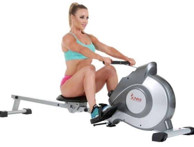 Row into shape with the top of the line Sunny Health & Fitness SF-RW5515 Magnetic Rowing Machine. This item provides a full body workout and targets all of the major muscle groups. You’ll be able to feel the burn in your arms, legs, back, glutes and abdominal area. To provide the maximum amount of comfort, this workout rowing machine has non-slip grip handlebars and a fully padded seat. The anti-slip foot pedals and adjustable foot straps ensure your glides will be smooth and your feet secured. The Sunny Health & Fitness rowing machine features a large LCD console display and attached wheels for convenient portability. It offers all of the necessities for an intense, yet enjoyable rowing workout in the comforts of your own home