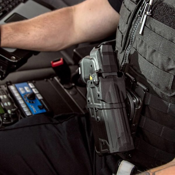 Our TASER 7 Left Handed Duty Holster with Tek-Lok is built from the ground up to be the most modular TASER 7 Holster platform on the market. Featuring a Level 2 retention system, adjustable cant, and a plethora of mounting options, this holster is ready for duty use. Paired with our innovative mounting options, officers will have the ability to carry their TASER 7 in a multitude of configurations. Left-hand, right-hand, cross-draw, on the belt, or mounted to the plate carrier, our mounting platforms offer quick adjustments for duty specific applications. Integrated Level 2 Retention Hood prevents the device from being removed from the holster. With Tek-Lok it can be quickly and easily adapted to mount on the belt or MOLLE equipped platforms on the fly.