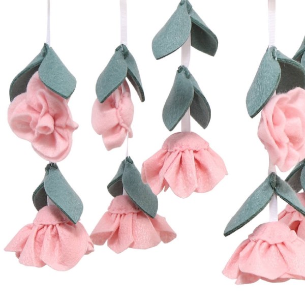 Send your little one off to sleep in a field of flowers with The Peanutshell Farmhouse rose ring musical mobile. These sweet flowers, in soft pink felt, playfully hang from a central ring. Mobile pairs wonderfully with The Peanutshell Farmhouse collection or great on its own.