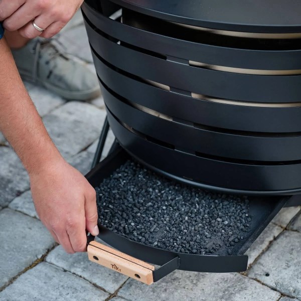 The TIKI Brand Fire Pit’s beautiful design was created with you in mind. Constructed with a combination of heat treated stainless steel and powder coated steel, the Fire Pit helps keep the moments lasting longer. A patented internal airflow system provides low smoke and smell, and an ash pan ensures less ash, less mess and less stress. So you get all the benefits of a wood log fire without any of the hassle. The Fire Pit can be moved throughout your backyard. It weighs only 45 pounds and can be grabbed under the top outside lip of the Fire Pit when fully cooled. A two-man lift is recommended and remember not to place on combustible surfaces.