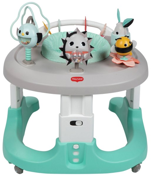 - The versatile design of Tiny Love’s 4-in-1 baby walker can be configured as a stationary activity center, pusher, walker, or jumper.