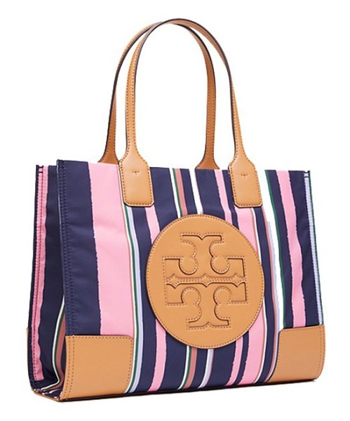 Bring colorful confidence to your daily style with the magnetic synthetic Tory Burch(R) Ella Printed Tote with dual shoulder straps.