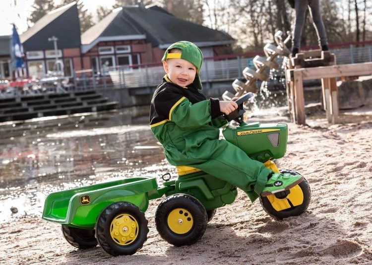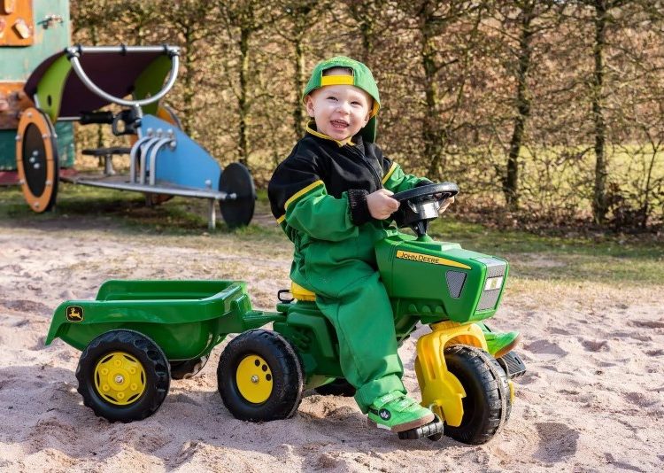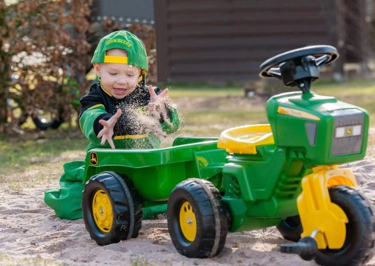 Toys John Deere 3-Wheel Trac with Trailer Ride On, Green/Yellow