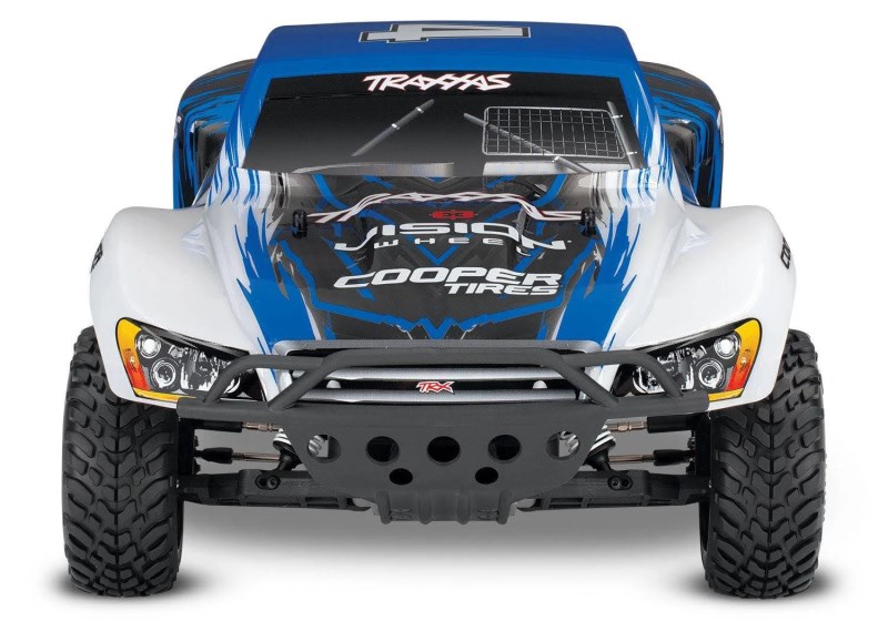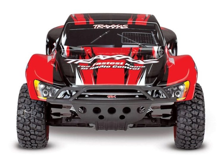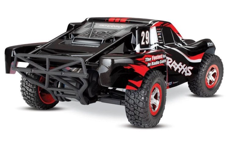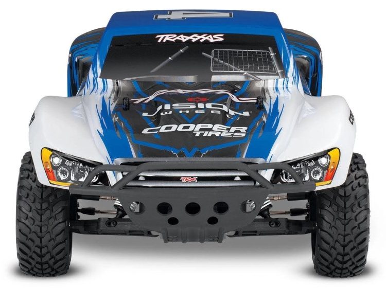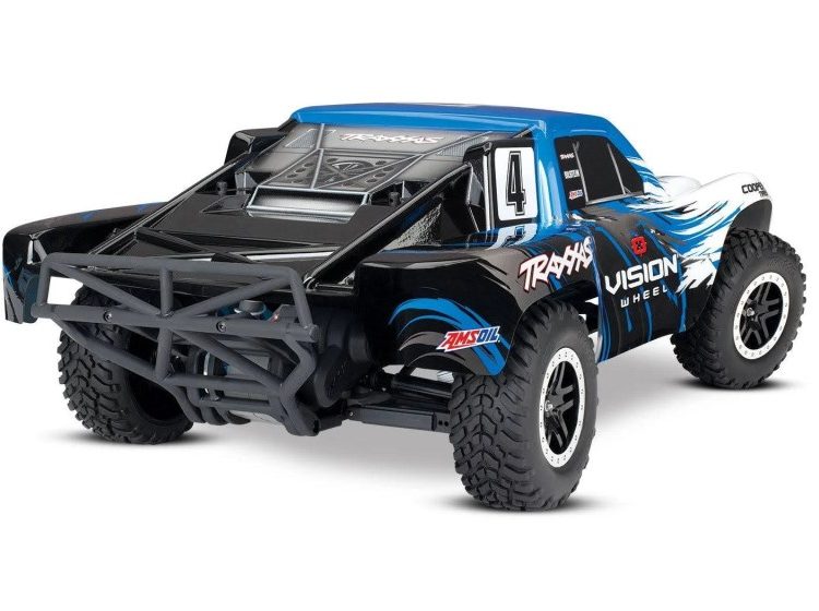 The Traxxas Slash is the ideal entry into RC model building for anyone who doesn’t just want to take leisurely laps around the parking lot. The rear-wheel drive equipped with a 550 Titan motor gives the model enough propulsion and traction. Thanks to its waterproof electronics, you can enjoy unbridled driving fun even in bad weather or on muddy surfaces. These models are ready to go right out of the box. You get a complete package with a pre-built model, a compatible transmitter, a battery and a charger. Even the transmitter batteries are partially included. Due to the easy handling, this type is ideal for entry into the world of model sports. Short-course trucks are tuned pickups that are modeled after their real-life counterparts, the Trophy Trucks. The wide body covers, unlike other off-road models, the wheels and thus affects the driving behavior.