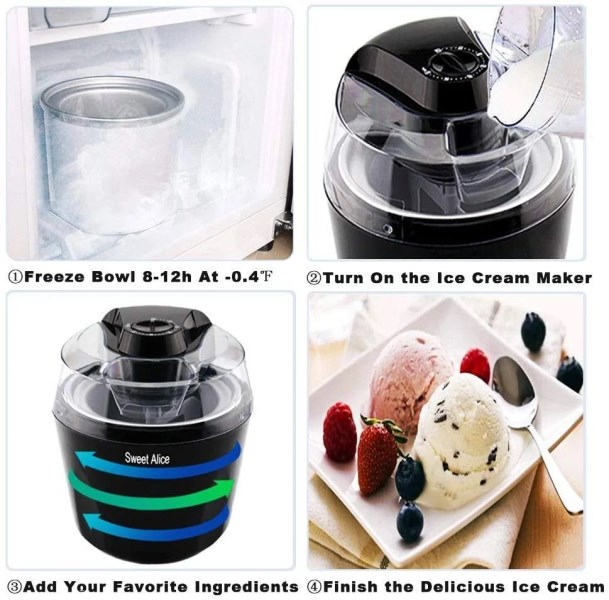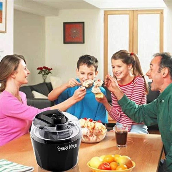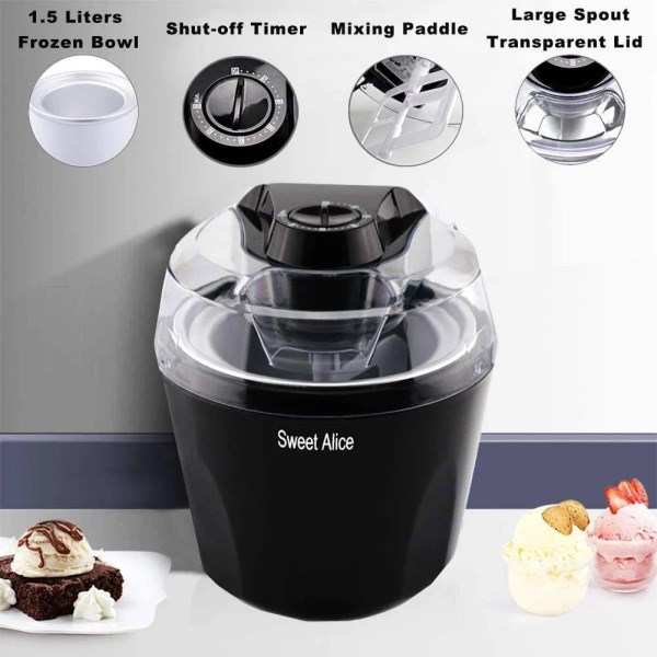 CREAM MAKER – This automatic ice cream machine can make ice cream what you want. After adding your favorite ingredients it can deliver your sorbet ice cream or frozen yogurt in 20 to 25 minutes. Allowing you to easily cater to parties and family gatherings in a short period of time. SHUT-OFF TIMER FUNCTION – Easy to use it has 30 mins countdown timer with auto shut off function you just adjust the knob to a suitable time. Then the ice cream machine does the rest automatically. And you can enjoy the frozen treats in no time. 1.5L DETACHABLE FROZEN BOWL – The detachable mixing arm and freezer bowl can remove and easy to clean. The freezer bowl can ensure your desserts are evenly frozen eliminating the need for ice and ensuring adequate capacity for 4-6 people. Frozen bowls need to be completely frozen before use. LARGE SPOUT TRANSPARENT LID – The large spout transparent lid can let you watch the freezing process as it progresses. And Ice cream maker is made of food grade aluminum and is safer and more assured.