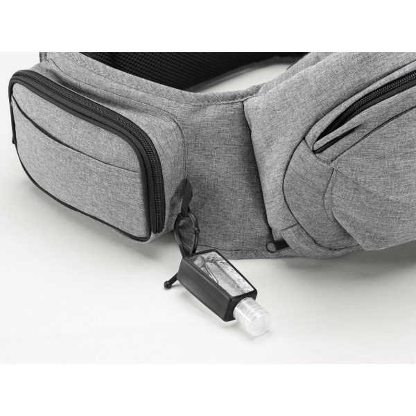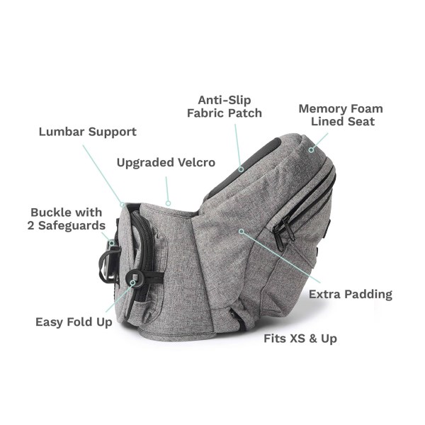 Ditch the difficult carriers, sweaty baby sacks, and complicated strap-ins. TushBaby is changing the way parents carry their babies with a simple hip seat. The memory foam-lined hip seat provides optimal comfort and hip health for little ones. The supportive belt (now with additional padding, lumbar support, and high-quality easy closure) evenly distributes baby weight for mom or dad. And the storage area within the seat holds diapers, wipes, and changing essentials with extra pockets along the sides for keys, phone and wallet, a bottle holder, attachment loops, and smooth two-way zippers. Parents don t need to pack up 3 bags just to leave the house anymore. They only need the easy-to-wear, easy-to-fold-up TushBaby.