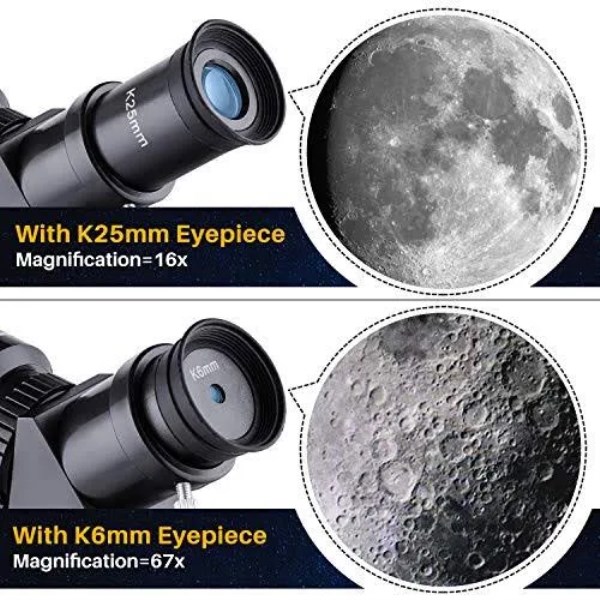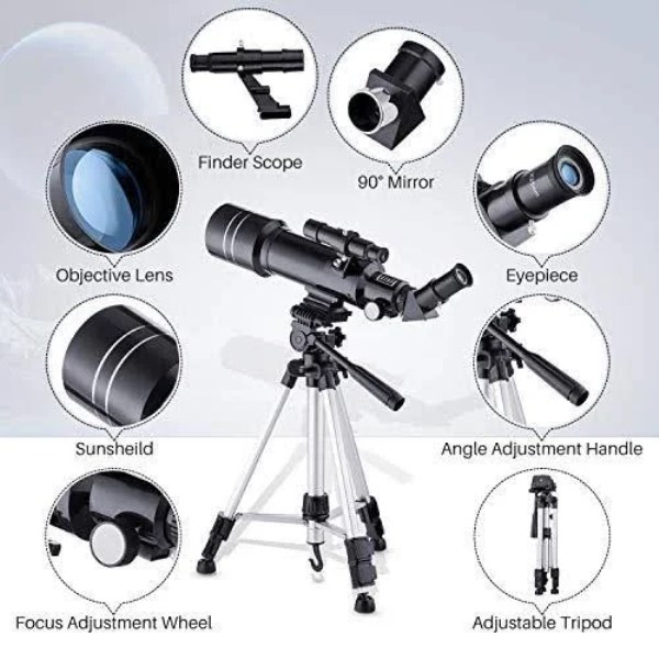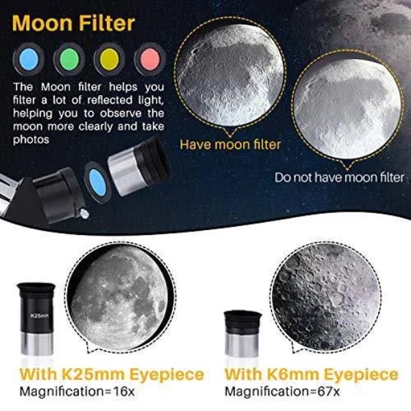 Upgraded Optical Glass Coating – Our telescopes for adults feature an upgraded optical glass coating and a 70mm aperture and 400mm focal length for a clearer view for beginners,and you will enjoy the great experience that the telescope brings to you Adjustable Tripod And More Stable Camera Control – The quality of the upgraded tripod will be more stable, and the height and angle can be adjusted according to changes in the moon.