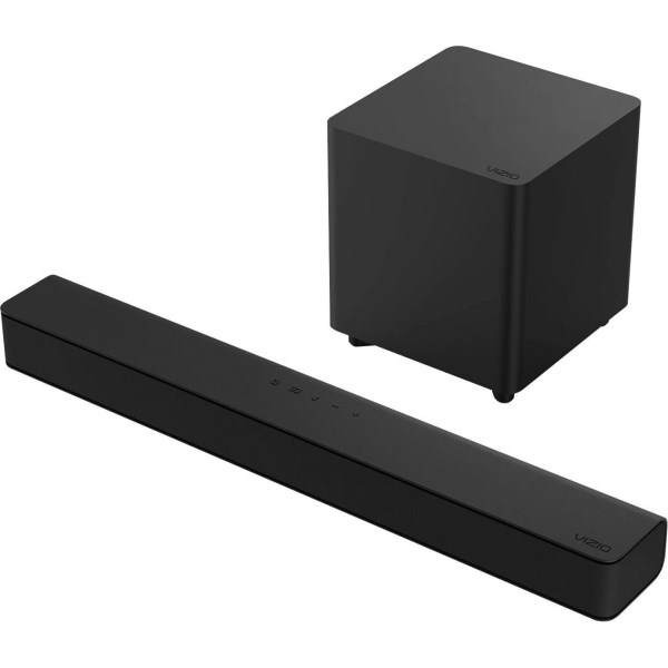 Big sound and bass in a compact package with the incredible VIZIO V-Series 2.1 Compact Sound Bar, from VIZIO, Americas No. 1 Sound Bar Brand. Compact in size, yet powerful in performance, delivering the audio experience that your favorite content deserves. The clean, low-profile design fits neatly under smaller TVs. Enjoy outstanding clarity and room-filling sound with Dolby Audio and DTS Digital Surround that combine to create a realistic audio experience. With 2 power-packed full-range speakers and a 4.5 wireless subwoofer, the V-Series delivers striking performance beyond its minimalist size. Get set up and listen in minutes with the included HDMI ARC cable, a connection that provides high-quality audio in a simple, single-cable setup. This also allows you to control your soundbar with your TV remote. Wirelessly stream your favorite music and podcasts with Bluetooth using your phone or compatible device, and enjoy an upgraded smart audio experience by easily connecting your favorite voice assistant (not included) to the dedicated Voice Assistant Input.