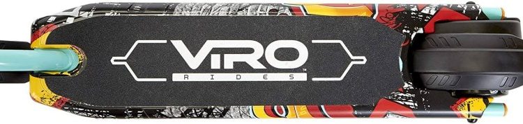 Choose your own path with the VIRO Rides VR 550E electric scooter! This high performance electric scooter features a sleek street art look and reliable technology that is sure to keep you moving. You can easily assemble the VR 550e yourself with the included tools and be up and racing at speeds up to 10 MPH in no time! The VR 550e boasts an impressive 6-mile range (with an average run time of 40 minutes per charge), so the world is at your fingertips while you ride. The durable polyurethane tires handle bumps in the road, and the adjustable height handlebars and hand operated front brake put control in your hands. Bonus points: the emission-free, chain drive motor means that the VR 550e is better for the environment than gas powered scooters. You’ll have a scooter everyone will be jealous of with the VR 550e’s high visibility, cool ground effect LED running lights and its sleek, street art styling. No matter which path you choose, VIRO Rides 550E gets you there.