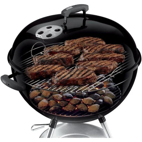 Features Plated steel cooking grate Porcelain-enameled bowl and lid Aluminized steel one-touch cleaning system Rust-resistant aluminum vent and removable ash catcher Two glass-reinforced nylon handles Durable all-weather wheels Bottom wire rack Heavy-gauge steel charcoal grate Lid handle with heat shield Angled lid hook inside grill lid Spring clip/push pin leg assembly Product Details Primary Material: Steel Overall 39.5” H x 25” W x 22.5” D Overall Product Weight 32 lb