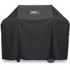 Weber Black Grill Cover For Spirit II 300 series – Spirit 300 series and Spirit 200 series with s Product Overview Embrace the pouring rain, freezing snow, and scorching sun. The lightweight yet durable Premium Grill Cover makes it easy to pull on and off your grill. Its fastening straps keep it from blowing into your neighbor’s yard, and water-resistant material helps maintain a clean, sleek surface. Made of 100% durable polyester fabric Lightweight and tough to maintain integrity in all kinds of environments Fastening straps keep the cover in place UV inhibitors in fabric resist fading Breathable and water resistant to help protect grill from the elements Fits: Spirit II 300 series, Spirit 300 series and Spirit 200 series (with side mounted controls)3 Year Warranty Product Details Color: Black Brand or Model Compatibility: Spirit II 300 series – Spirit 300 series and Spirit 200 series with side mounted controls Width: 51 in. Height: 42 in. Lined: No Weather Resistant Depth: 17.8 in. Material: Polyester