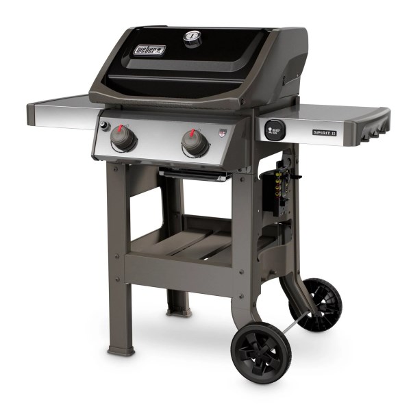 360 sq. in. cooking area cooks 22 burgers at once. Dimensions: 48W x 27D x 44.5H in. 103 lbs. 2 burners with 26,500 BTUs. Porcelain-enameled, cast-iron cooking grates. iGrill 3 compatible. Sure, one of the great things about grilling is the simplicity of food and fire, but what’s the harm in adding a few toys for fun with the Weber Spirit II E-210 2-Burner Gas Grill? This gas grill features tons of extras to make your backyard culinary adventures easy, fun, and precise