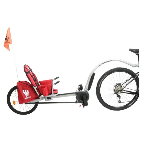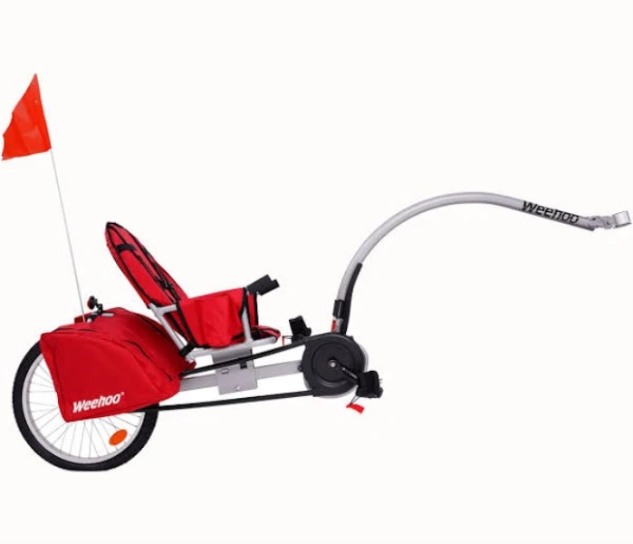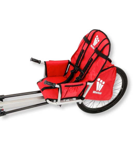 The new, redesigned seat allows for tool free adjustments. The seat adjusts to accommodate kids 2 to 9 years old. For either IGO Turbo model, the maximum per seat weight limit is 36kg. Maximum total weight limit for the single seat iGo, iGo Venture, and iGo Two trailers with cargo and passenger(s) is 36kg. Keep little ones safe and secure by using the foot straps and the adjustable 3-point harness with chest buckle. The foot straps are redesigned for 2015 as well and makes set up that much easier. Removable push bar easily detaches for travel and storage by removing the newly added snap pins. There is lots of storage provided in the seat and in the panniers on both sides of the rear wheel. The sprocket and chain are enclosed to keep little fingers grease free and away from harm. The comfortable handgrips give children something to hold on to. Optional canopy and rain cover accessories are sold separately