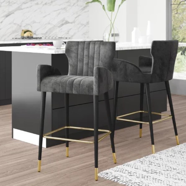 Williston Forge It’s no wonder why stools are such a sought-after staple in home decor: they offer sensible seating arrangements to countertops, provide a stylish focal point to your bar ensembles, and are easy to carry from room to room when guests need somewhere to sit. Take this one, for example, it features an open curved back and circular seat upholstered with faux leather in a solid colour. Plus, a footrest at the base provides added comfort!